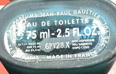 But, surprise, surprise! let's go and watch these two bottles produced in 1995 (actually, these are the first bottles of JPG Le Male): batchcode is Gxxxx (you can see even an "I", "M", or "O" in other bottles). In this case G means 1995 or 1996....